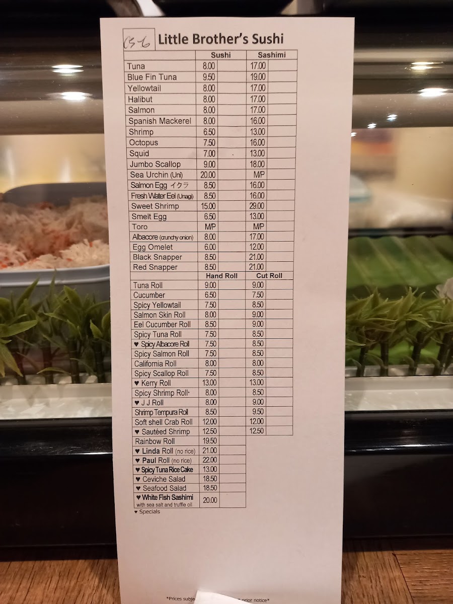 Little Brother's Sushi Menu